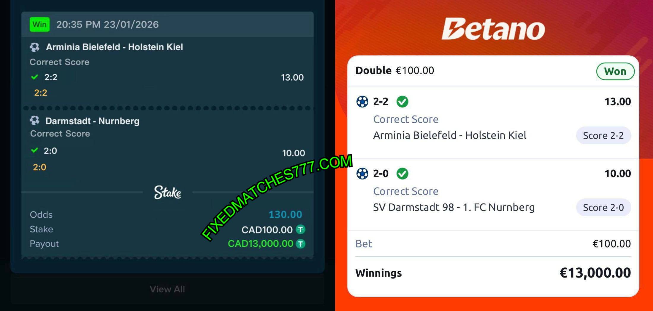 | Arminia Bielefeld vs Holstein Kiel | 2:2 (CS) | 13.00 | FT: 2:2 WIN |