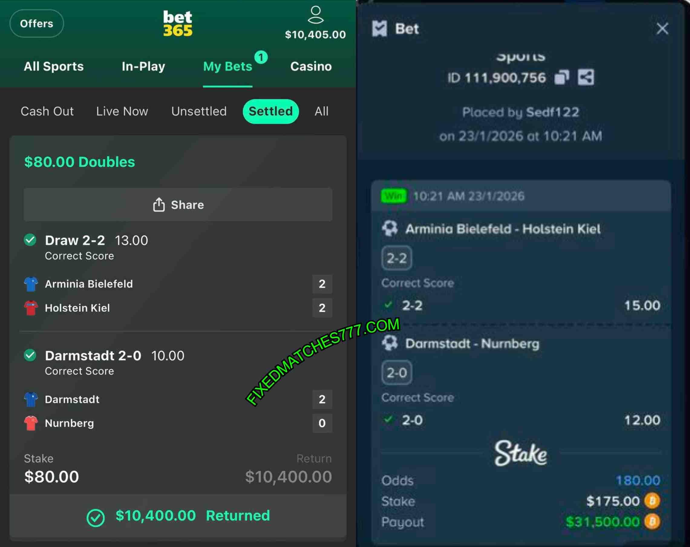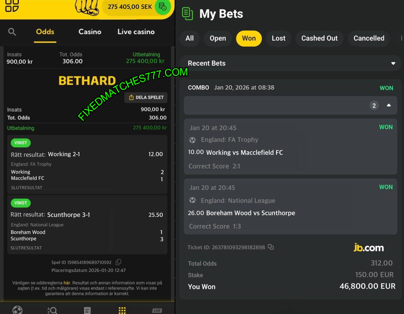 Check out all sold Correct Score Fixed Match Ticket ARCHIVE