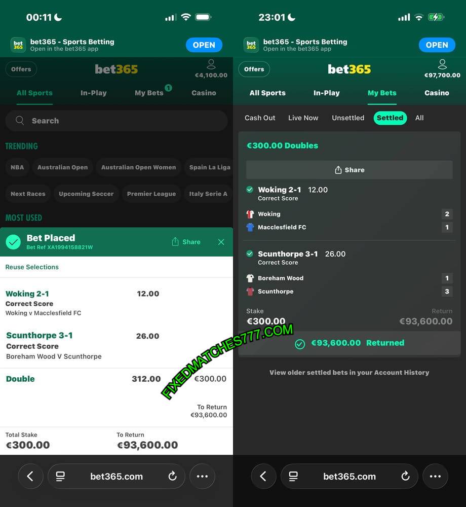 - TIP: 2 CORRECT SCORE FIXED MATCHES
