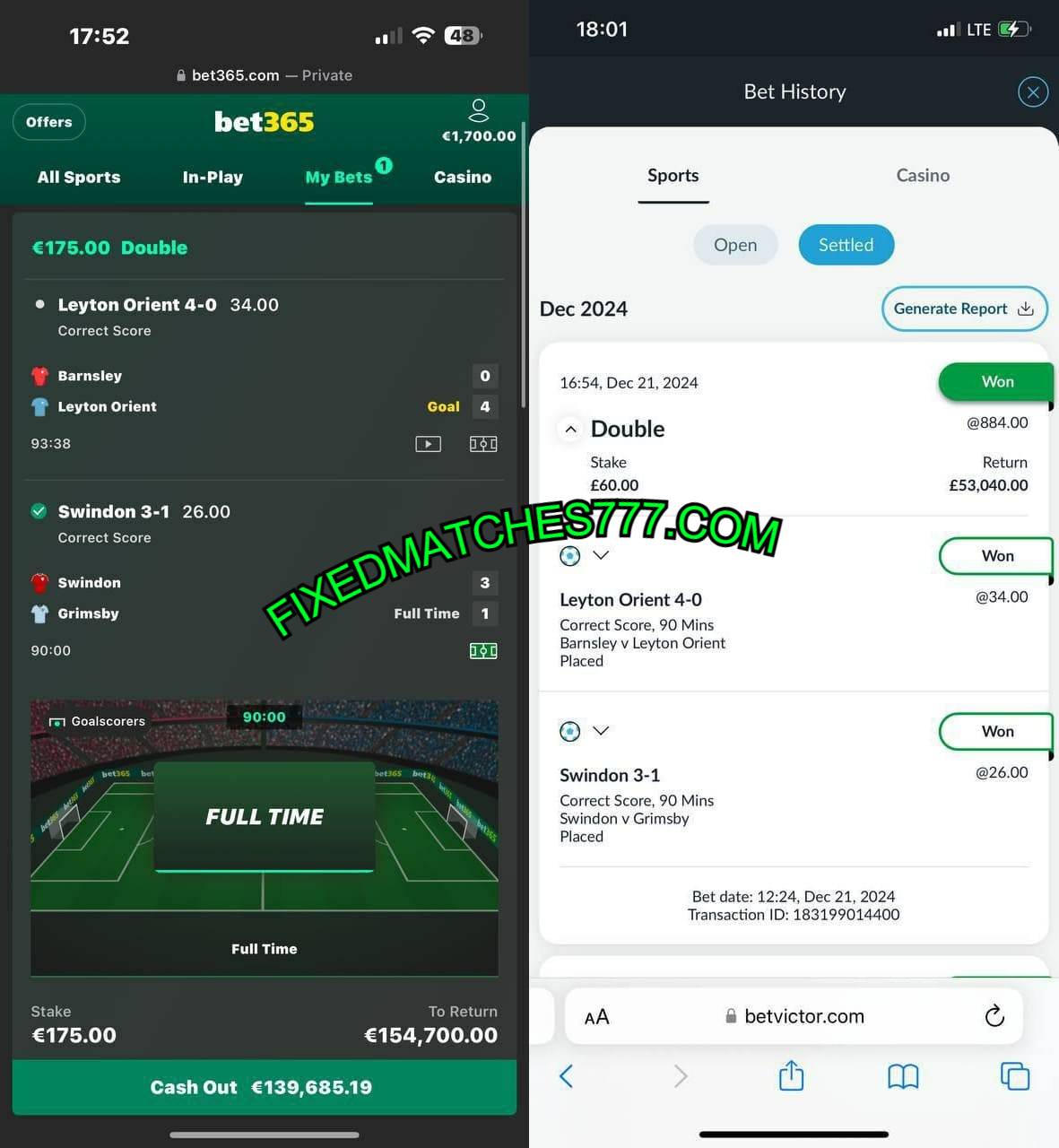 | Barnsley vs Leyton Orient | 0:4 (CS) | 34.00 | FT: 0:4 WIN |