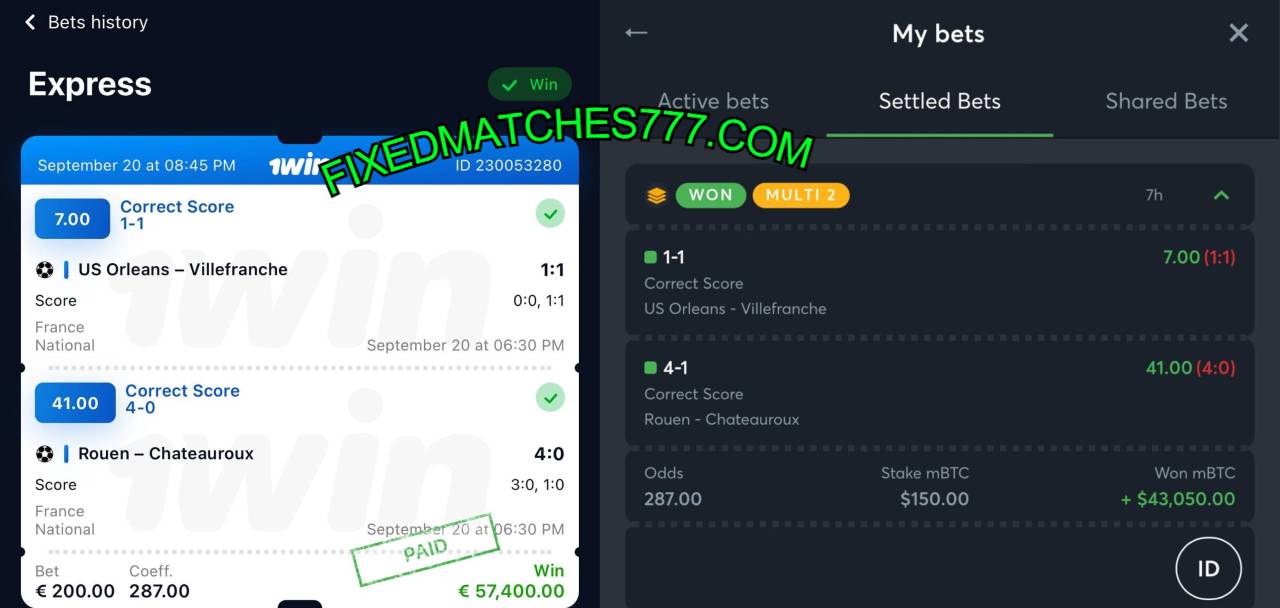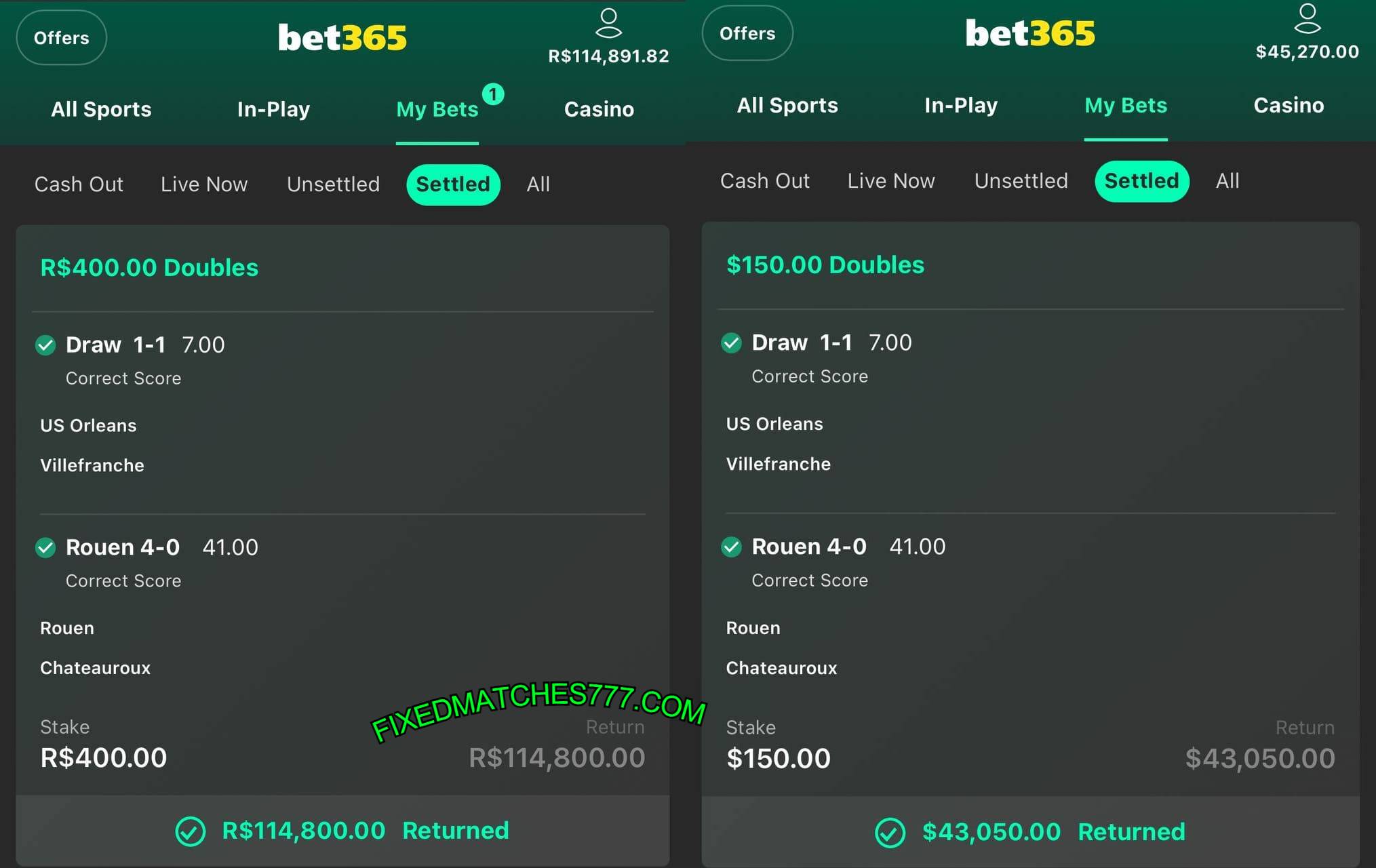 | Rouen vs Chateauroux | 4:0 (CS) | 41.00 | FT: 4:0 WIN |