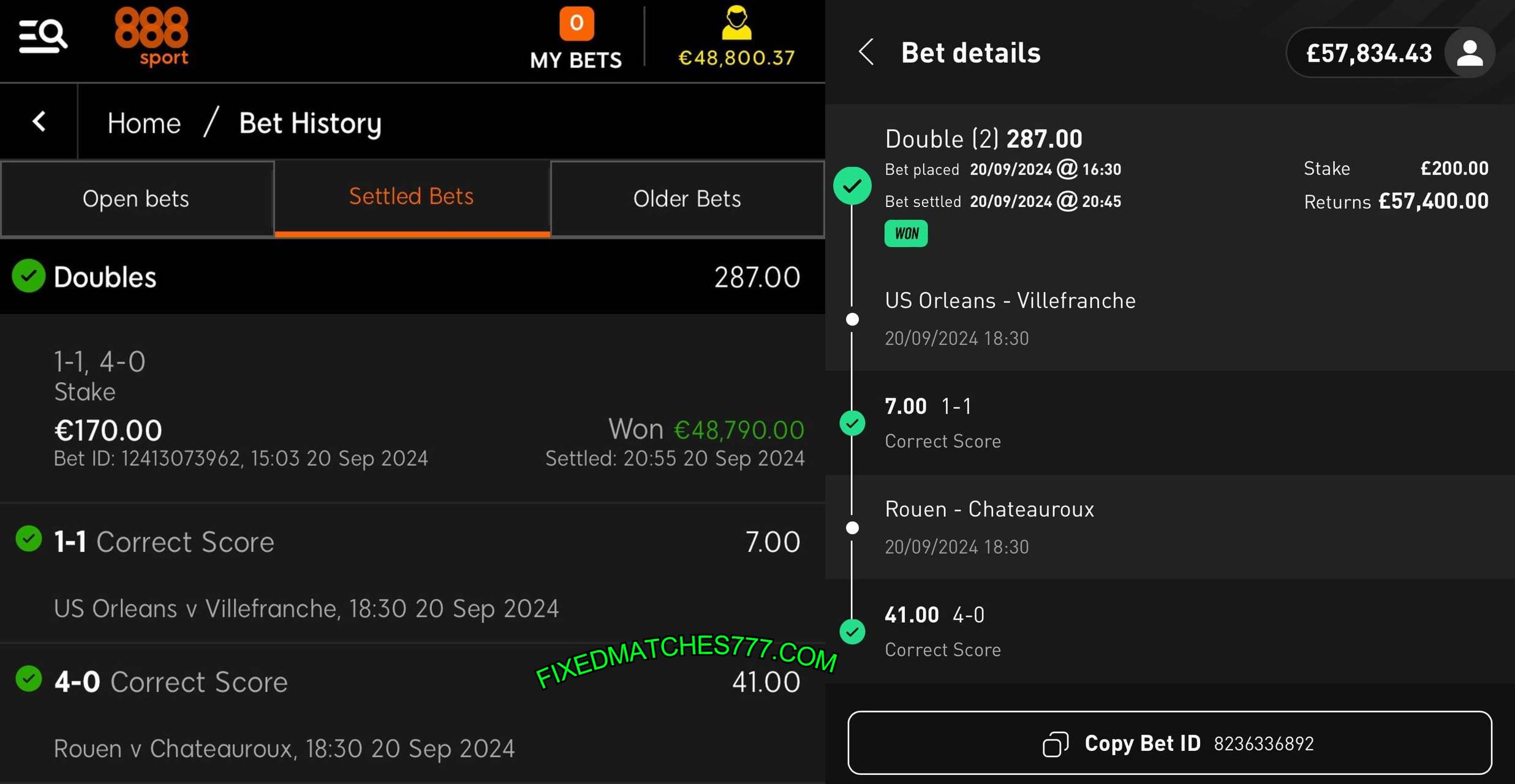 SCREENSHOT MULTIPLE BOOKMAKERS PROOFS OF 20/09/2024 (FRIDAY) 287.00 ODDS WON