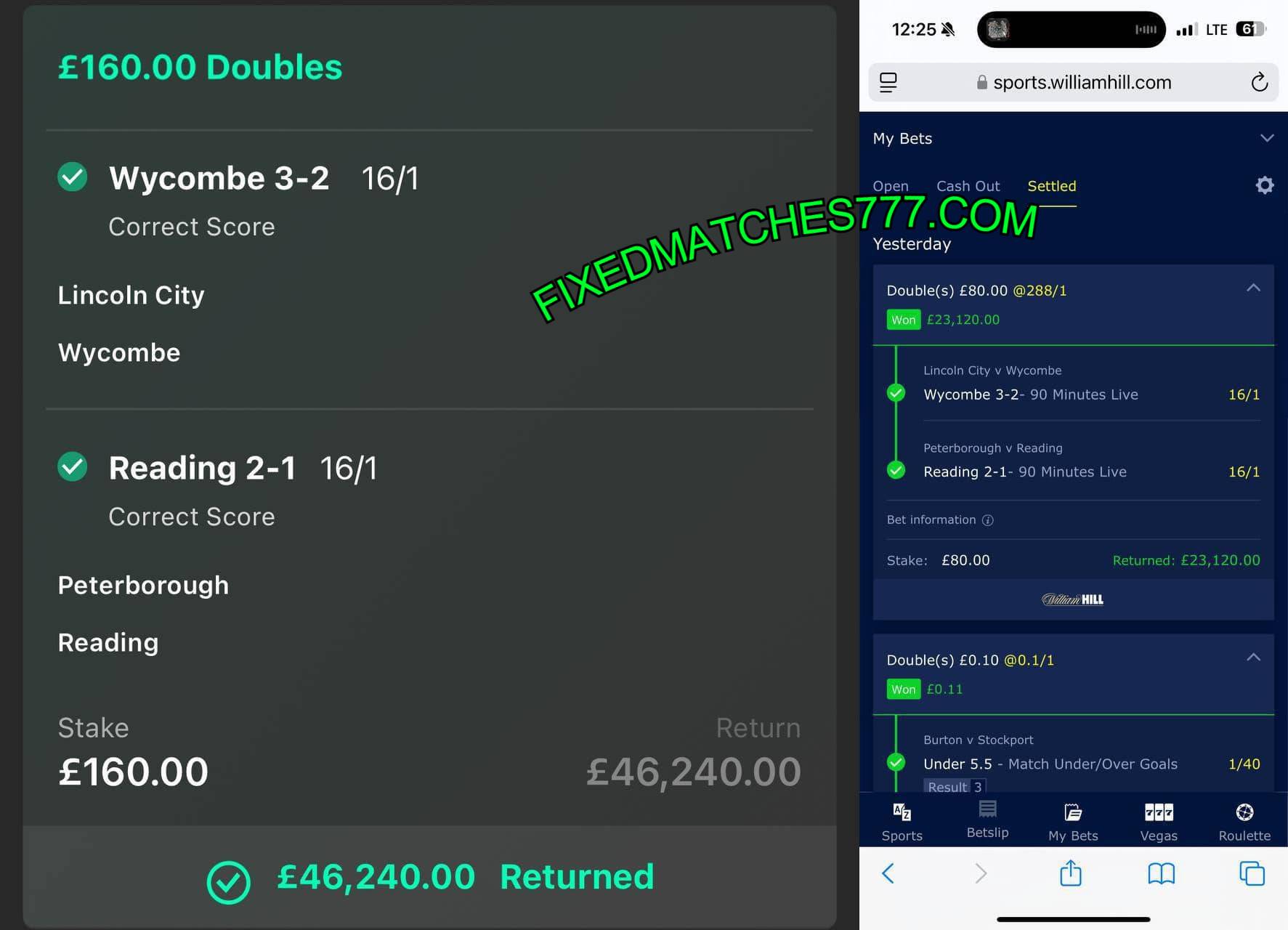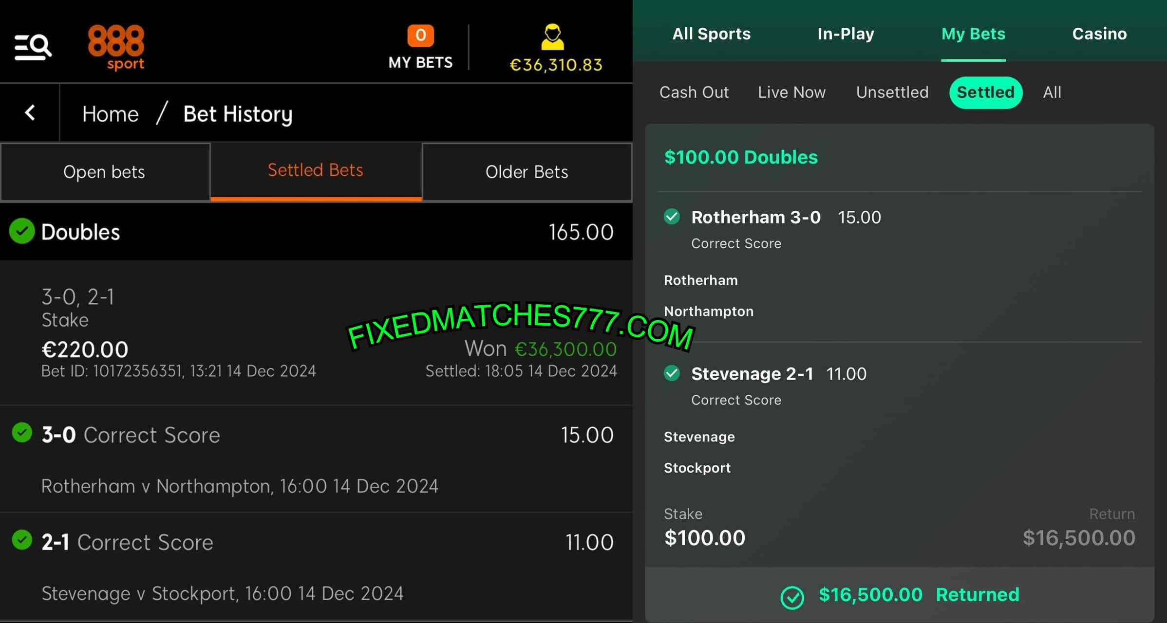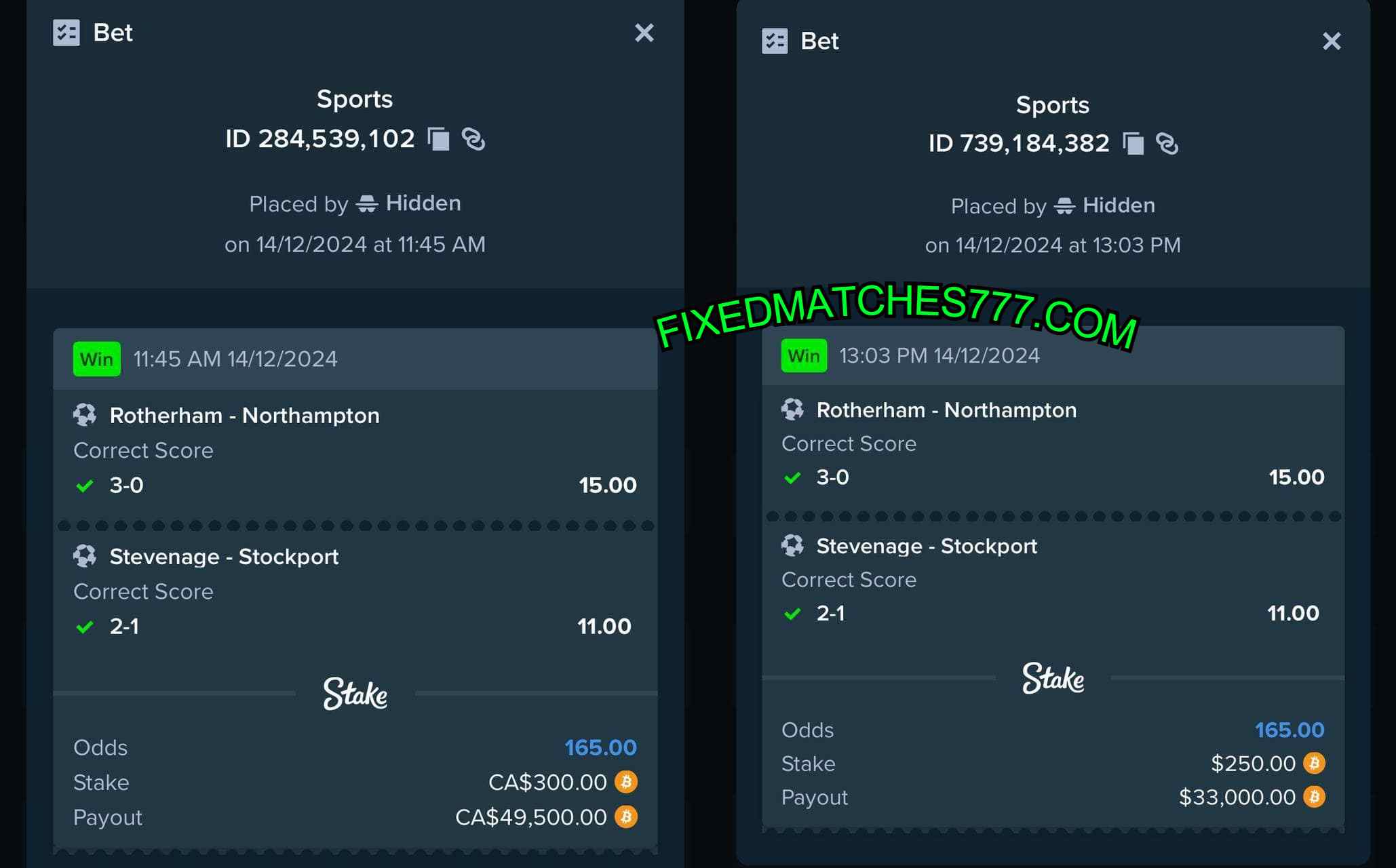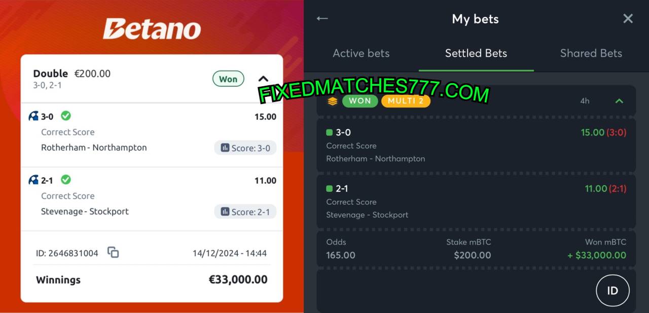 | Rotherham vs Northampton | 3:0 (CS) | 15.00 | FT: 3:0 WIN |