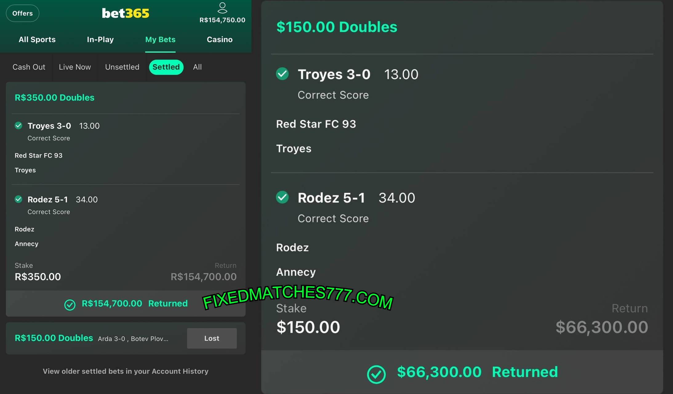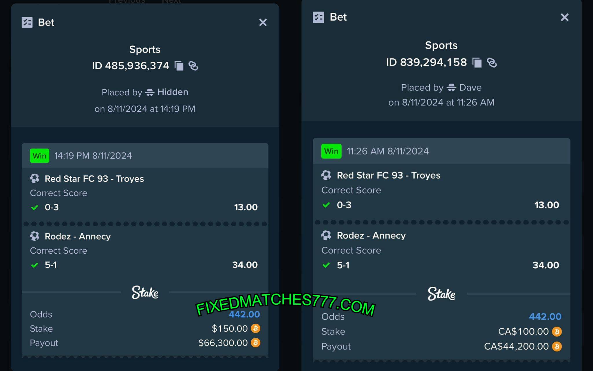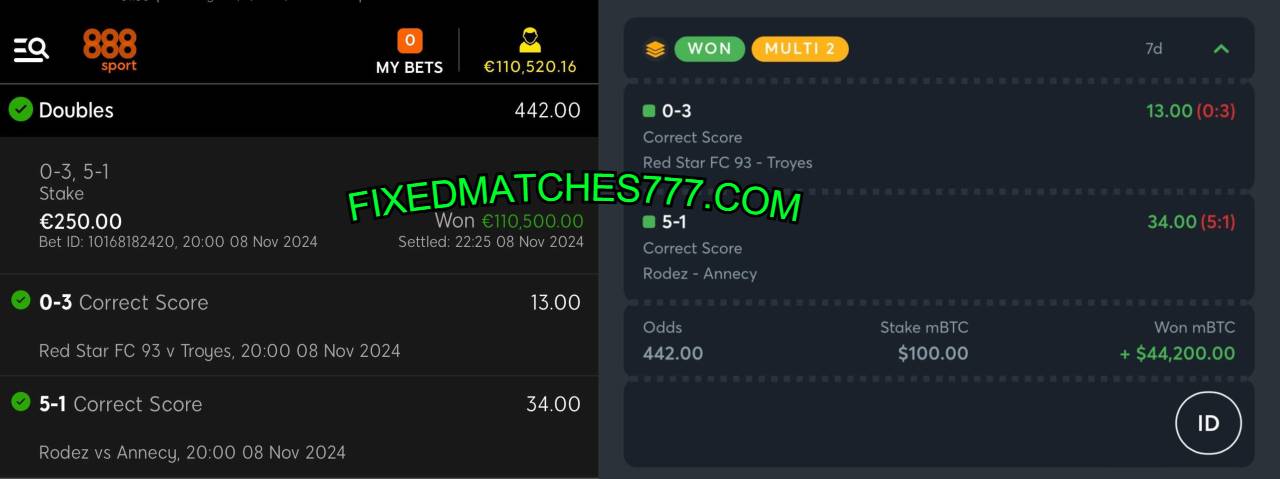 | Red Star vs Troyes | 0:3 (CS) | 13.00 | FT: 0:3 WIN |