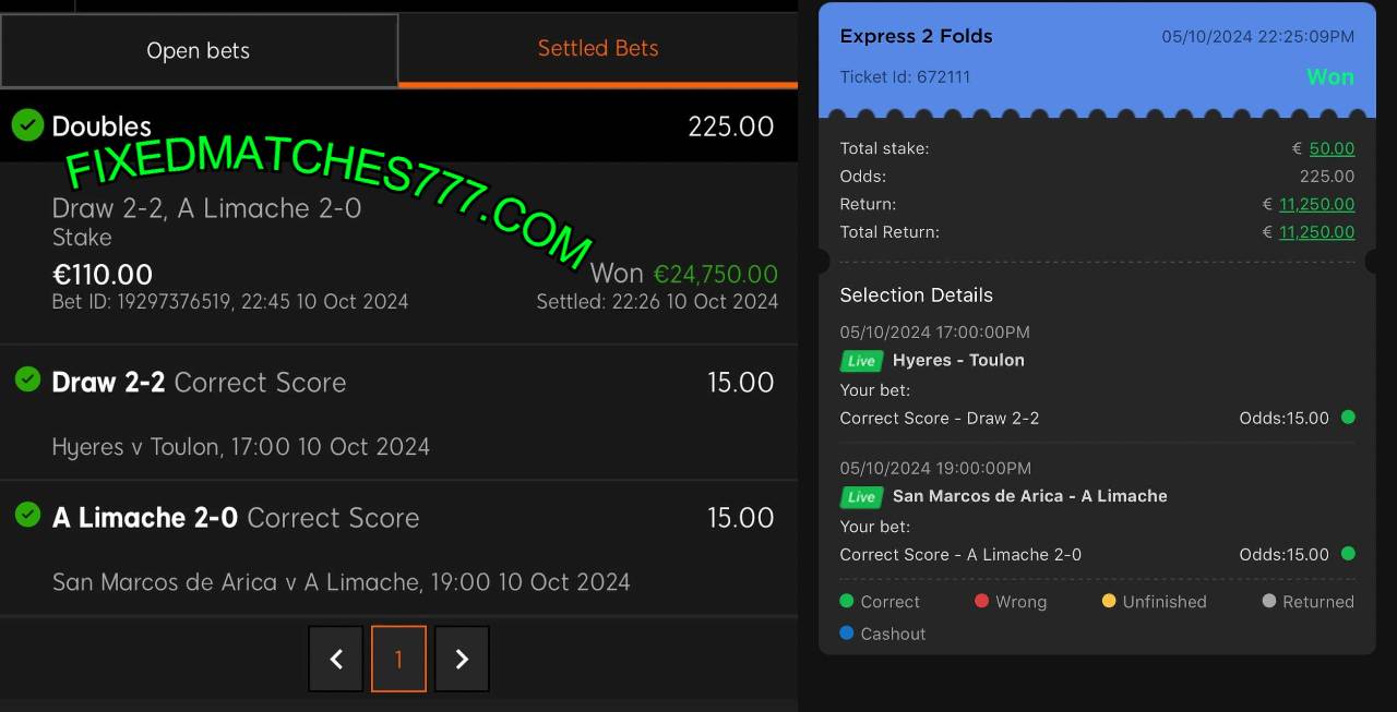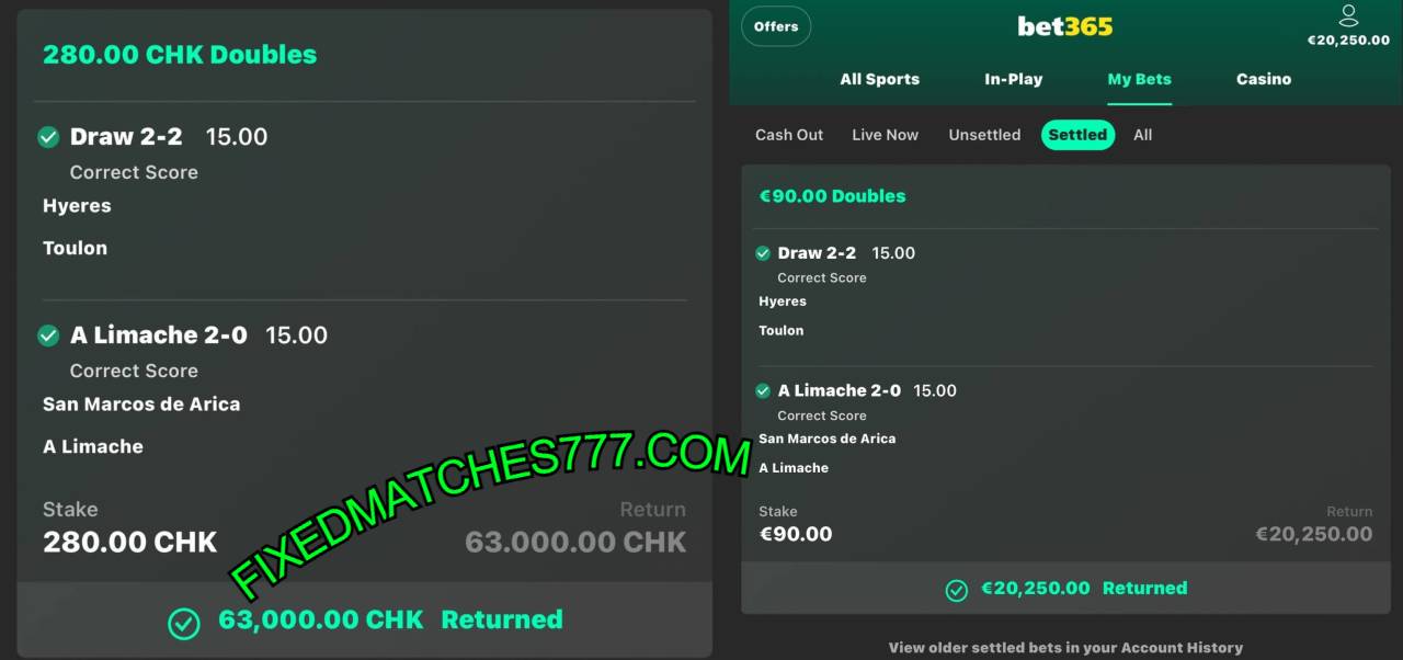 | Hyeres vs Toulon | 2:2 (CS) | 15.00 | FT: 2:2 WIN |