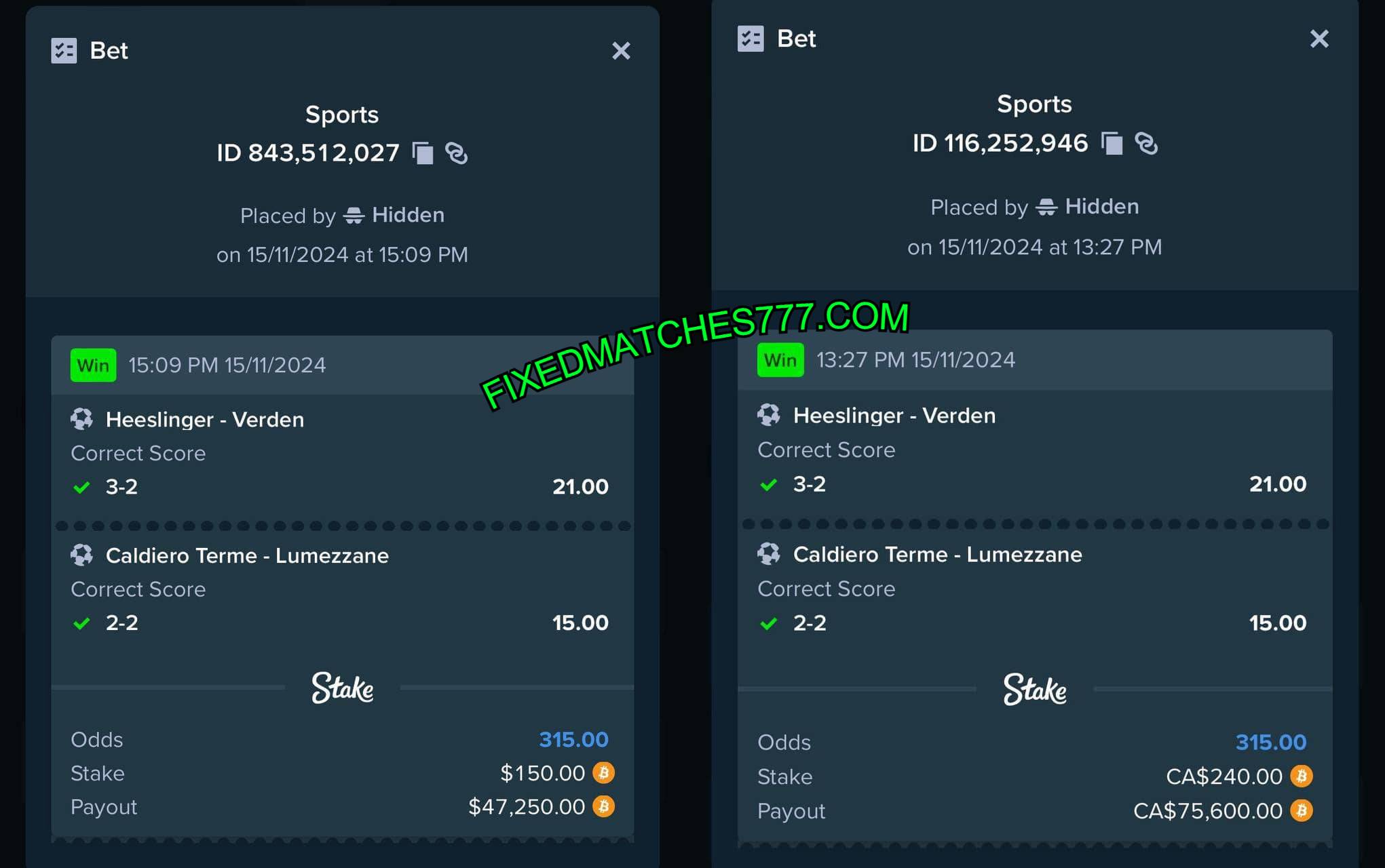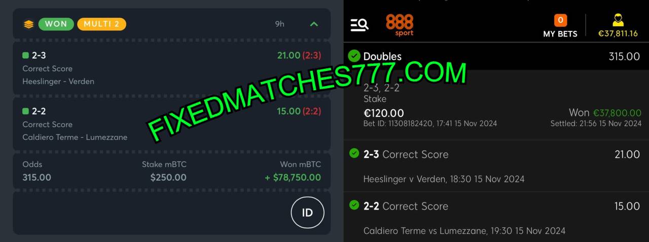 | Caldiero Terme vs Lumezzane | 2:2 (CS) | 15.00 | FT: 2:2 WIN |