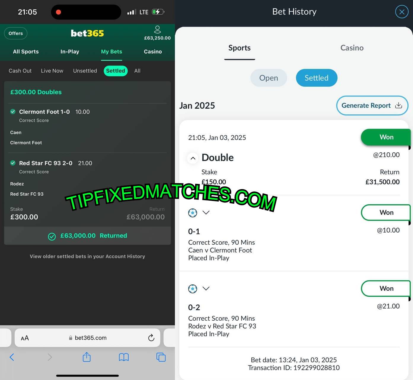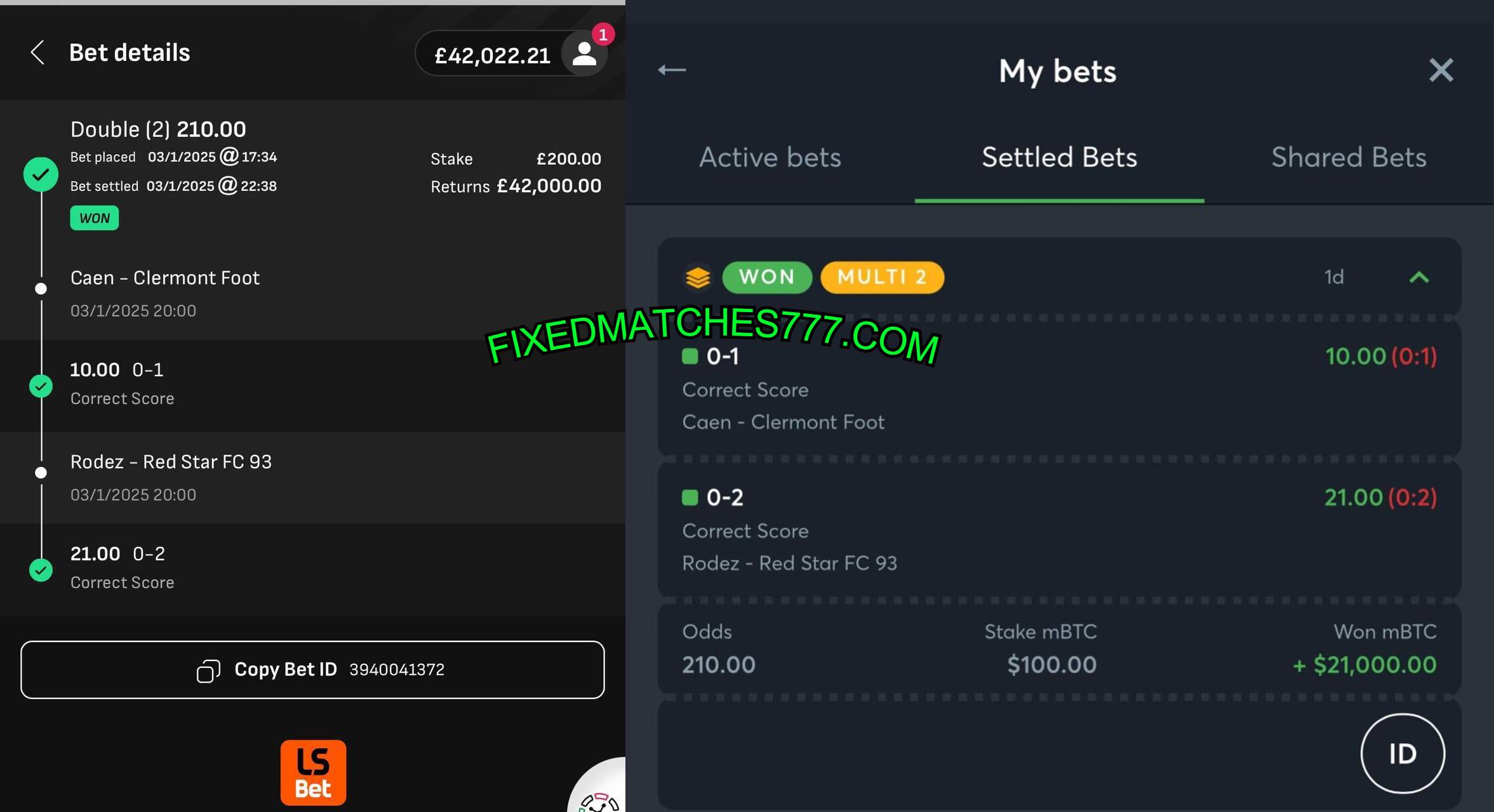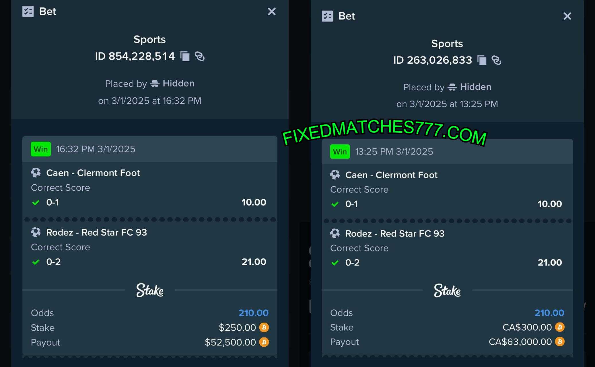 | Caen vs Clermont | 0:1 (CS) | 10.00 | FT: 0:1 WIN |