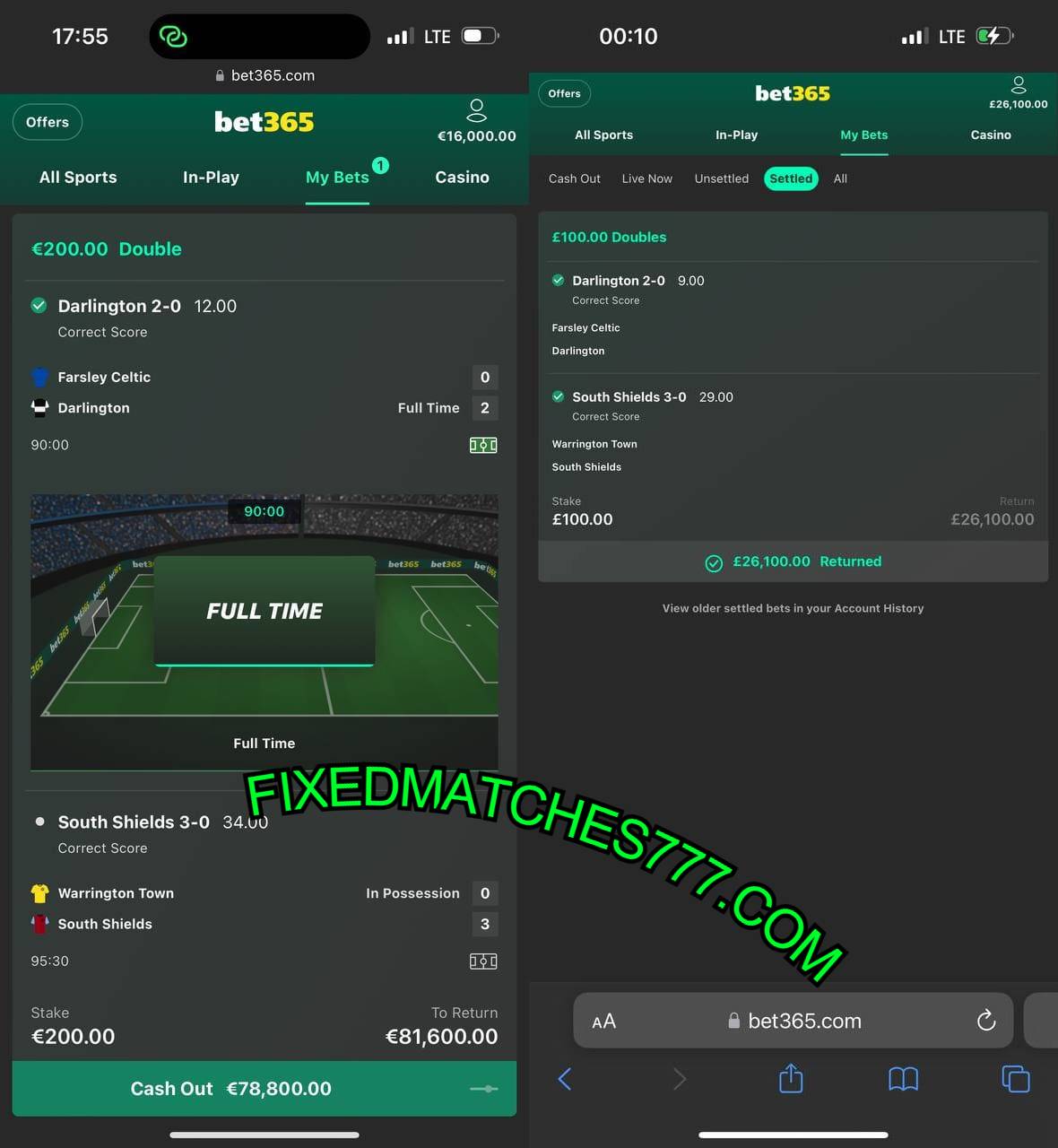 | Farsley vs Darlington | 0:2 (CS) | 12.00 | FT: 0:2 WIN |
