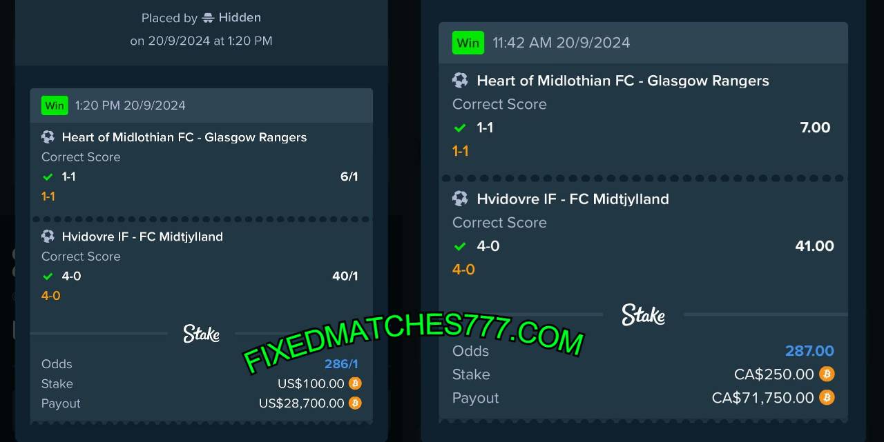 | Hearts vs Falkirk | 3:0 (CS) | 11.00 | FT: 3:0 WIN |
