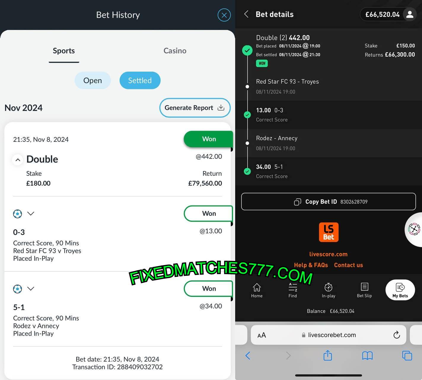 | Paris 13 Atl. vs Sochaux | 1:3 (CS) | 24.00 | FT: 1:3 WIN |