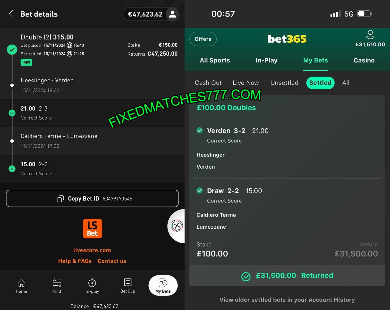 SCREENSHOT BET365 PROOFS OF 11/10/2024 (FRIDAY) 255.00 ODDS WON