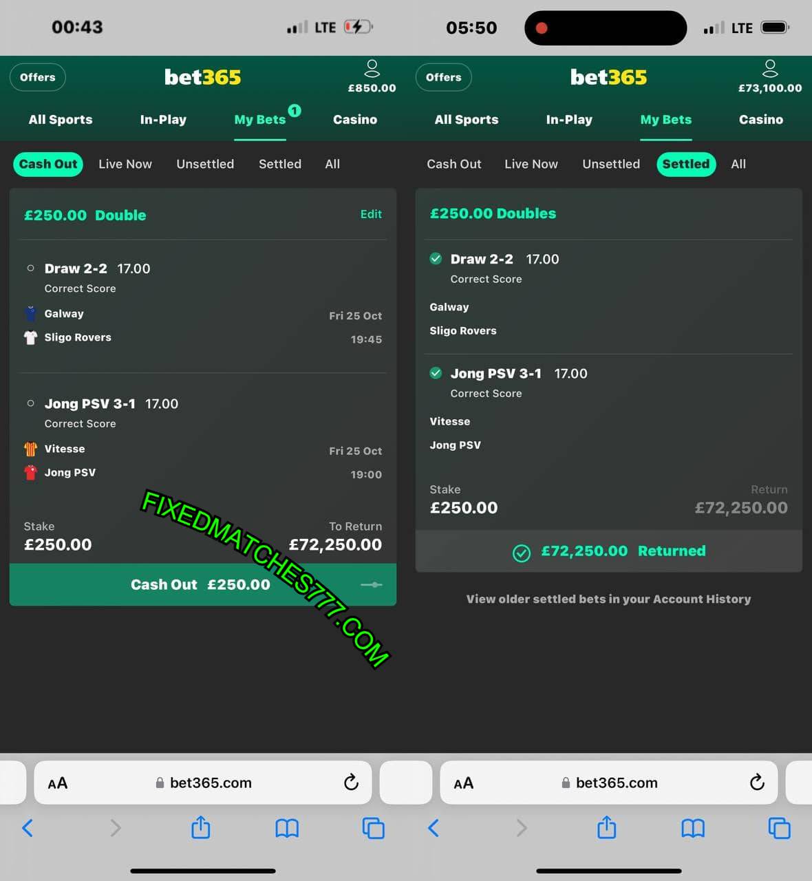 SCREENSHOT BET365 PROOFS OF 25/10/2024 (FRIDAY) 289.00 ODDS WON