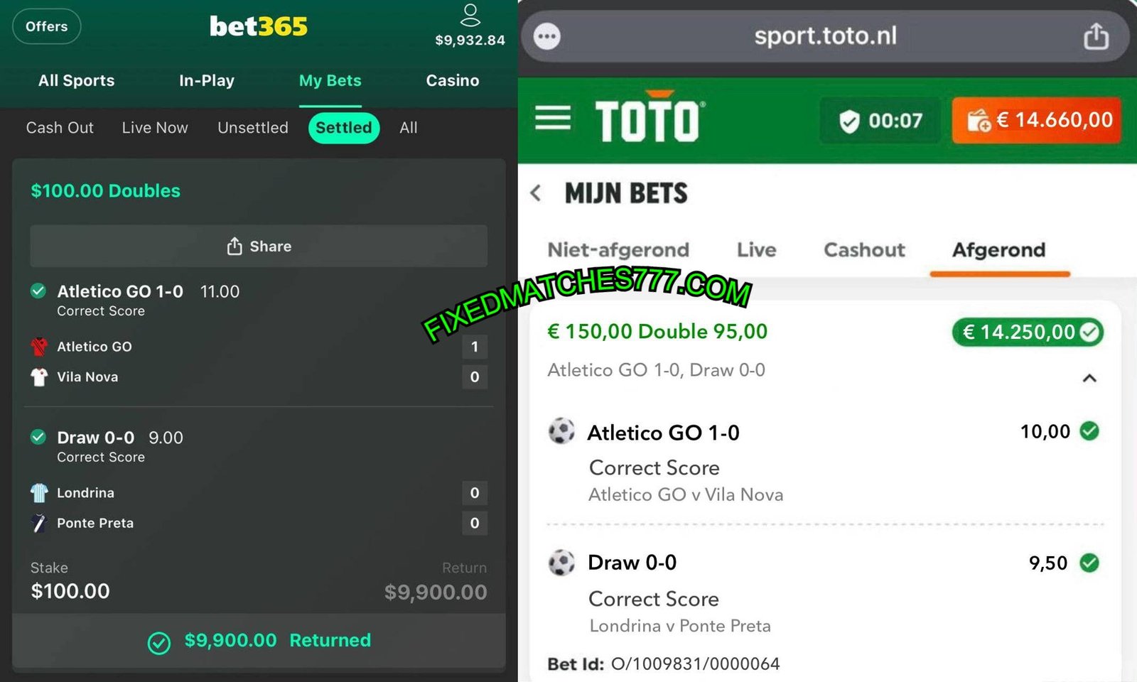 Check out all sold Correct Score Fixed Match Ticket ARCHIVE