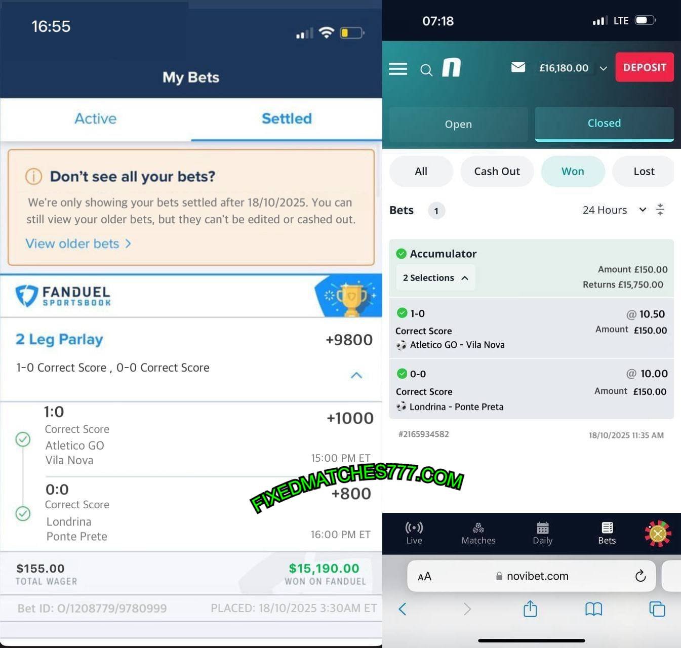- TIP: 2 CORRECT SCORE FIXED MATCHES